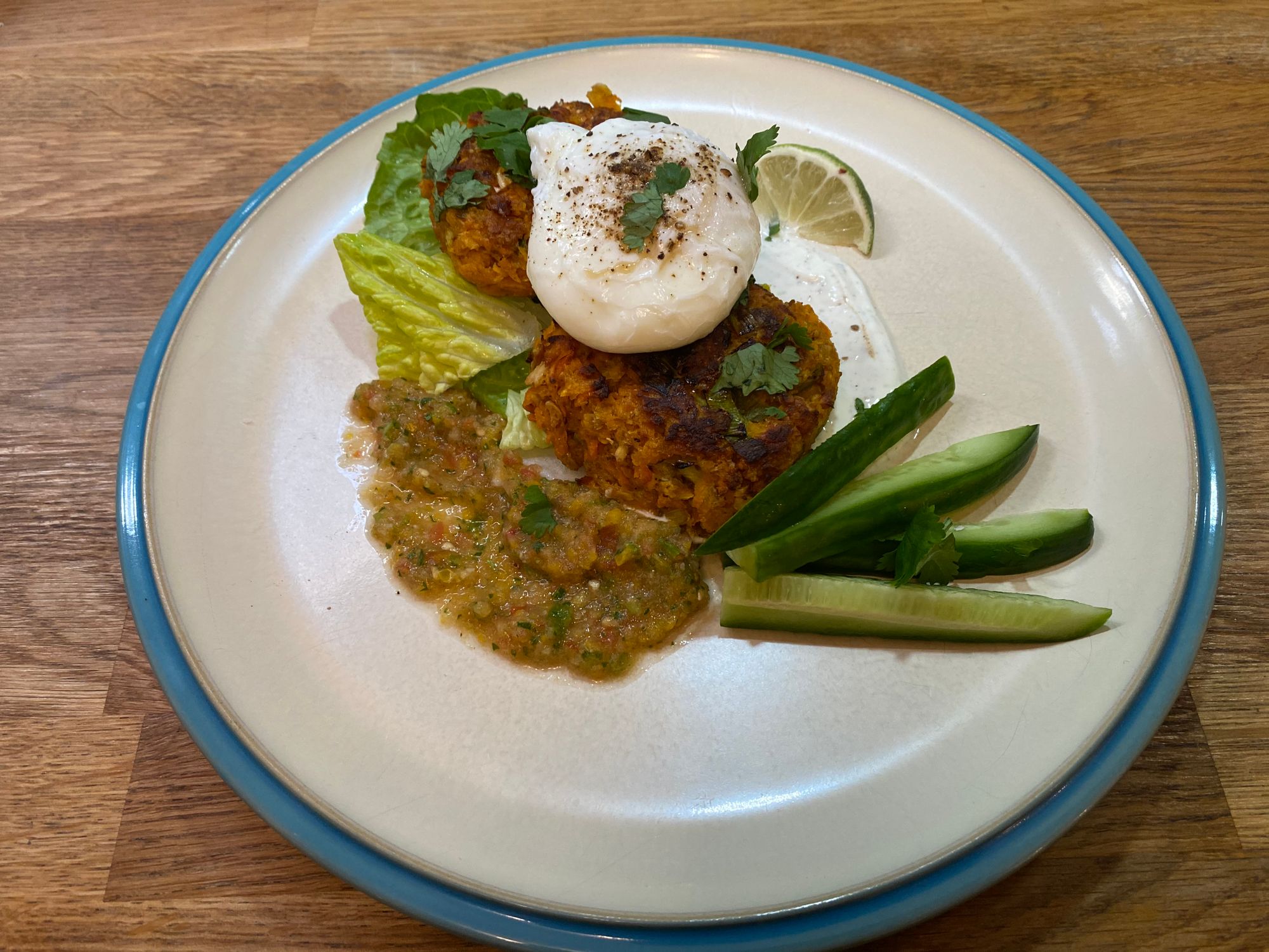 Love Trails Kitchen: Matt's Sweet Potato Rostis with Salsa and Lime Yoghurt Dressing